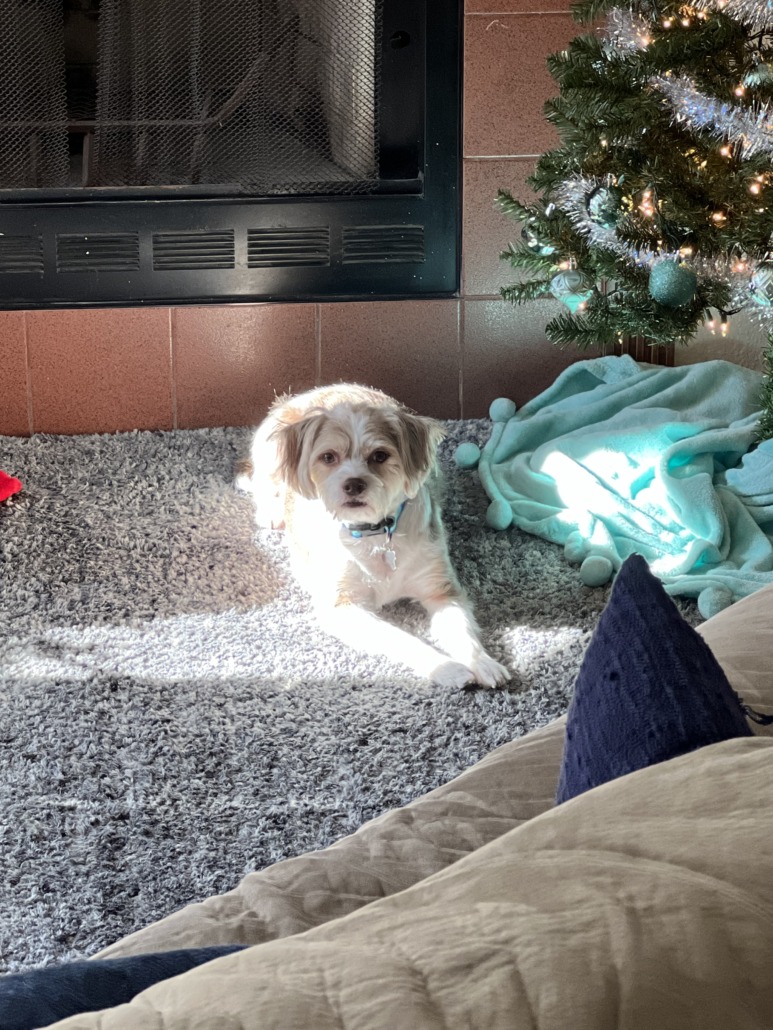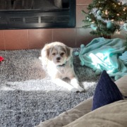 Mozzie is a small terrier mix. Very friendly. Responds well to treats