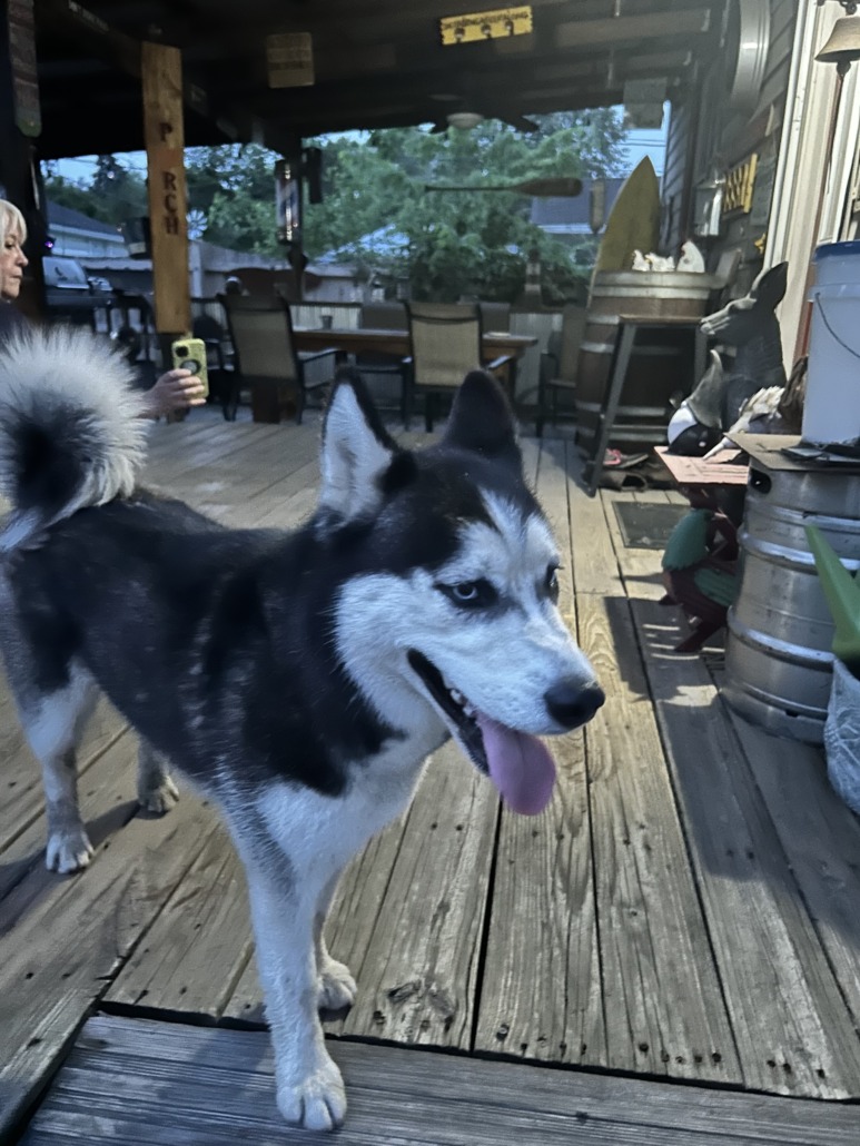 Female husky black and white with blue eyes