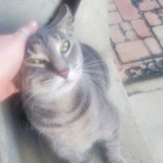 Sweet female all grey cat with green eyes