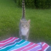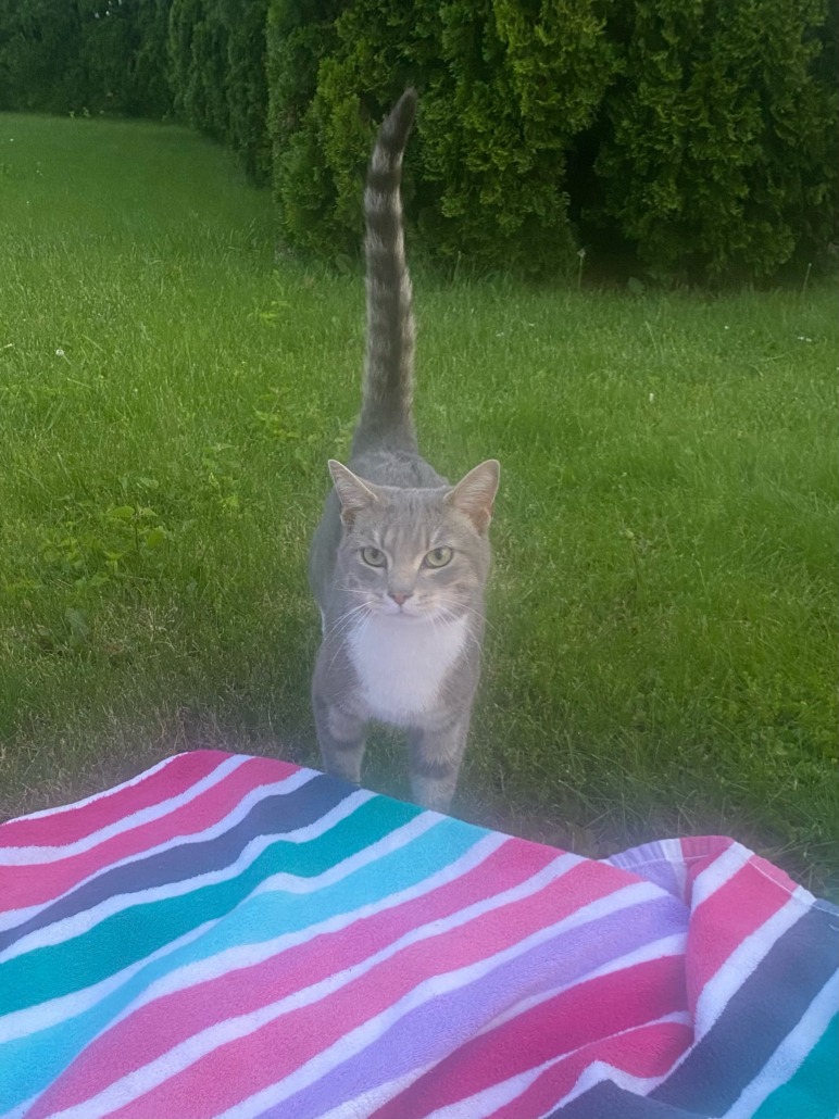 Very friendly grey and white male tabby cat. No collar. VERY loud meow. Has a limp but no visible injury. Found in CentralPark at Worthsville and Sheek Rds. Proof of ownership is required. He is microchipped but owner info was never updated from the foster’s info.