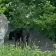 Large black pit bull/boxer with white feet and white belly. Very shy.