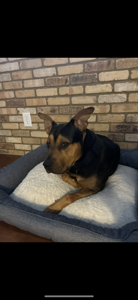Tri color male mostly black tan underbody white spot on chest and neck.. little white on bottom lip!