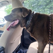 Large dark brown Labrador retriever mix. Older and slow walker. A little fat. Very calm and friendly. Was walking on sidewalks and attempting to cross streets. Very cute. Proof of ownership required.