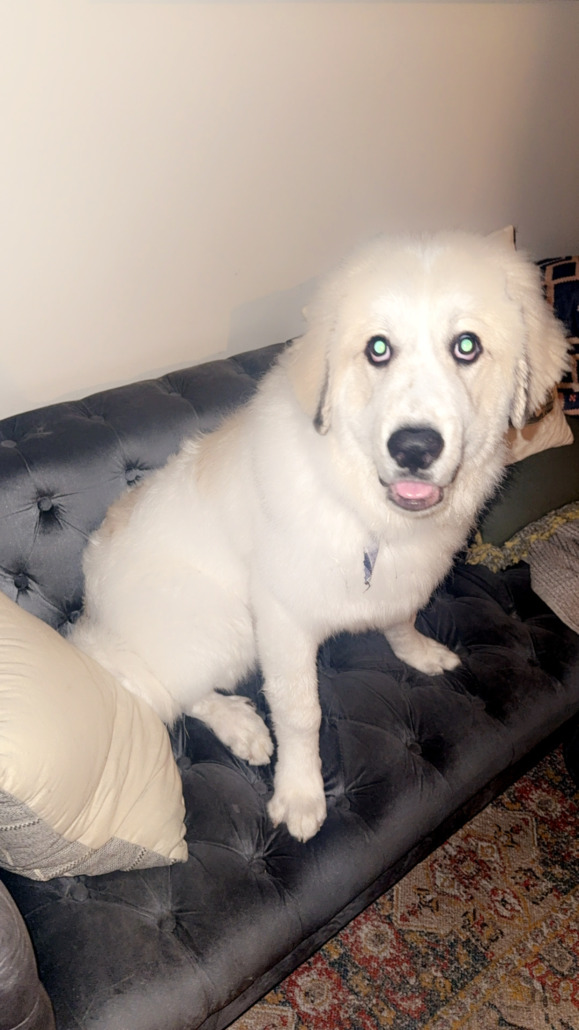 Bear is a Great Pyrenees. He’s 7 months old. He got out of our gated backyard after 7 pm on 5-27-25. Please help us bring him home!