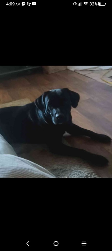 All black female Lab just recently gave birth to puppies , she’s very sweet , smart & is usually great with kids .