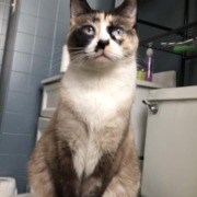 She almost looks like a Siamese cat. Very skittish, she’s never been outside. Blue eyes.