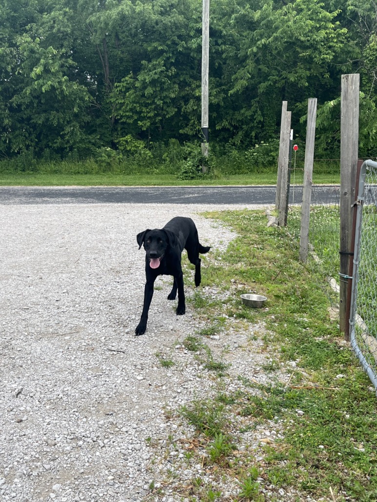Young black male, lab mix. not neutered. large dog. friendly and a little hyper.