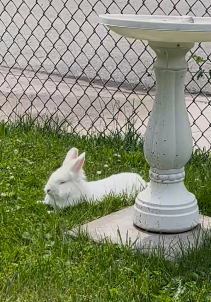 White Rabbit with pink eyes. Found Friday morning under my car. Posted on Neighbor also. Located at 37th and Kenwood
