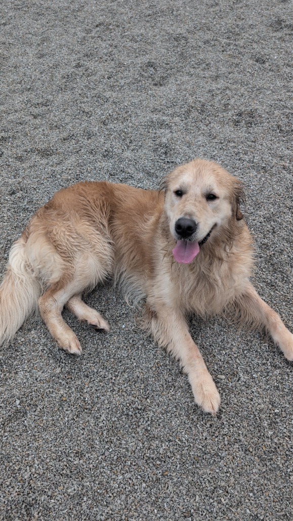 Adult golden retriever. Thin black color. No tag.