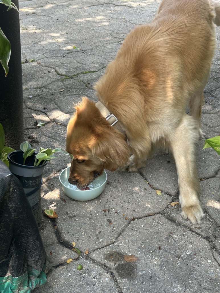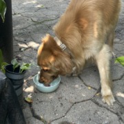 Beautiful reddish/golden male golden retriever very friendly, with leather collar.