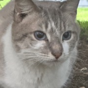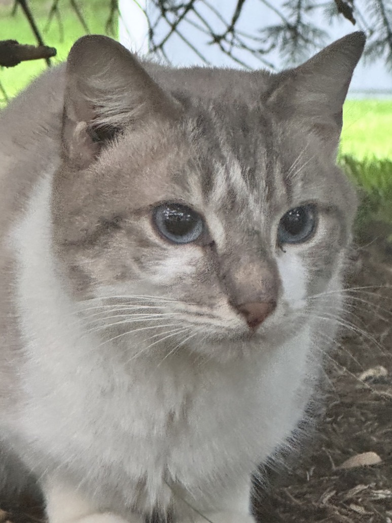 Found white, grey, cream colored cat with blue eyes.