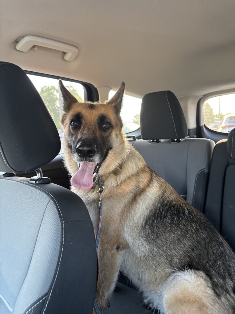 German shepherd with collar. Owner can describe collar for proof of ownership.