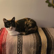 She’s a smaller calico cat responds to “Baby” “Baby ginger” and “Ginger”. Very snuggly and vocal. She isn’t very food motivated but likes the lick sticks and loves catnip!