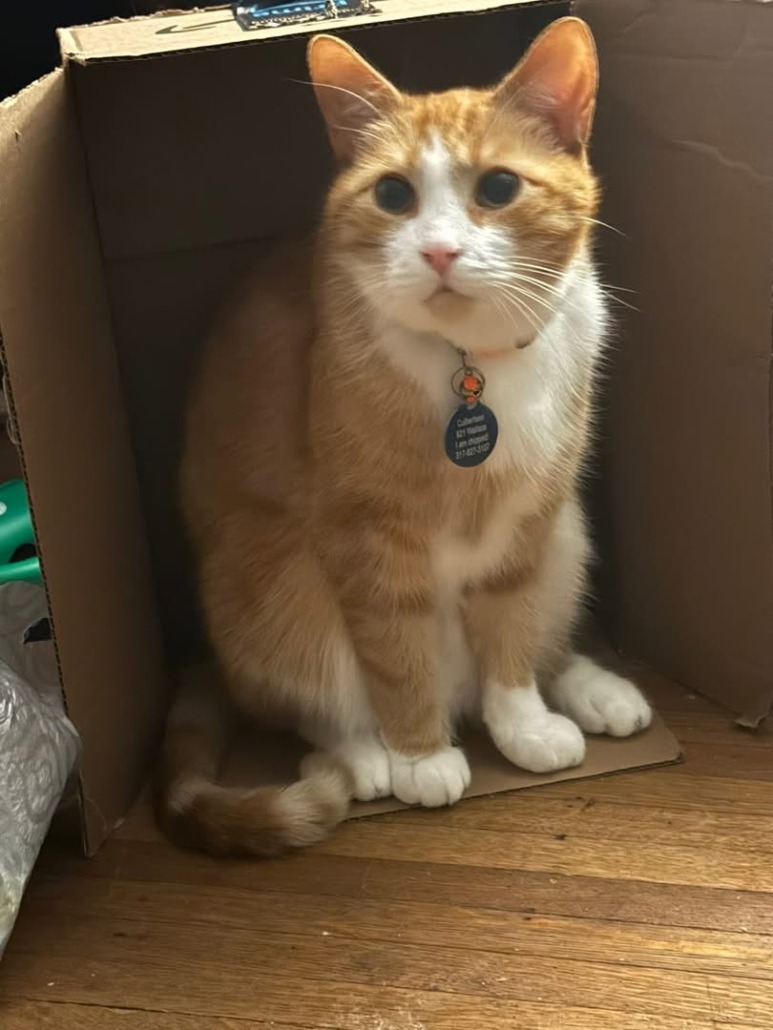 My cat Cooper who is usually an indoor cat has gotten out (thru a broken window in my door that they have turned into a cat door! )