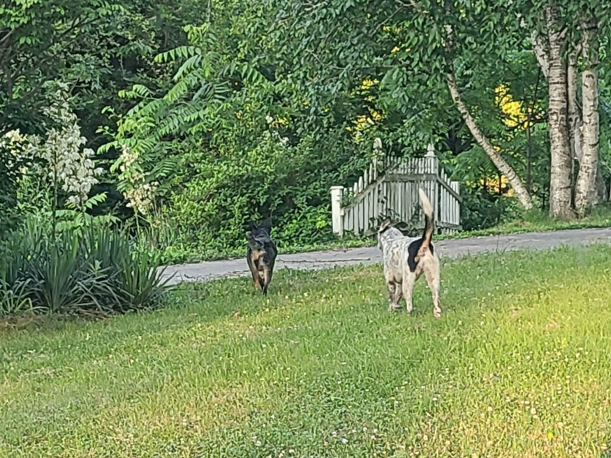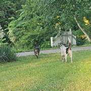 2 dogs together at the corner of Prospect and Muessing Road, just past Paul Ruster Park. They seem to be lost and scared and were hiding in bushes when spotted. Trying to check on them, they barked and then ran away and I did not want to chase them into Prospect street in case they got hit (cars fly pretty fast here). No collars on either, but very well-maintained dogs and clearly familiar. May have gotten out of someone’s yard.