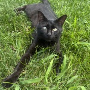 Young (<1yr) intact black male cat, no chip. Found laying under my car in the heat. Underweight with old injuries to right eye and leg. Seemingly not cared for but very friendly. Please reach out if looks familiar or has been lost longterm. Proof of ownership required.