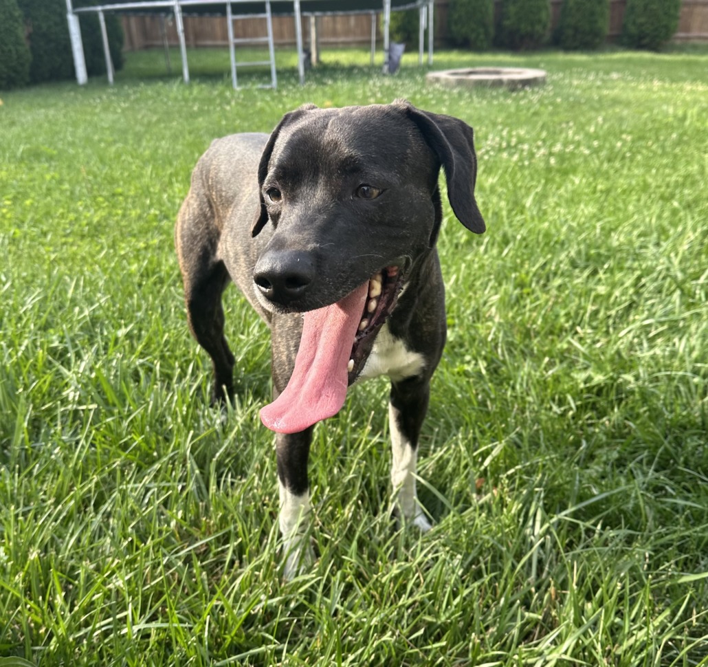 Medium male, brindle with white chest and paws. Proof of ownership required.