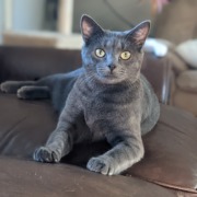 Elliott is an handsome adult male neutered gray kitty with tabby striping on his legs. He is microchipped with no collar. He is very sweet but can be skittish in new places.