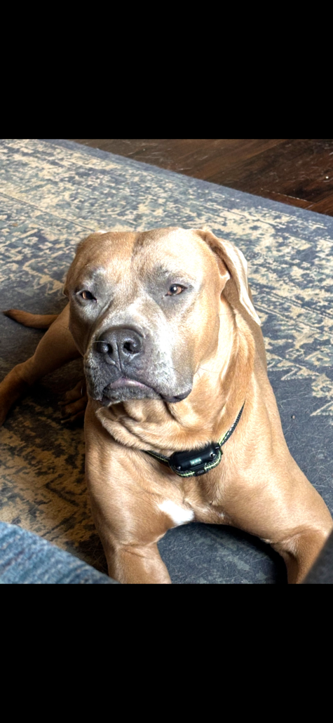 Light brown make pit bull/Mastiff missing from east side. He’s very friendly and has a scar on his nose form being attacked as a puppy.