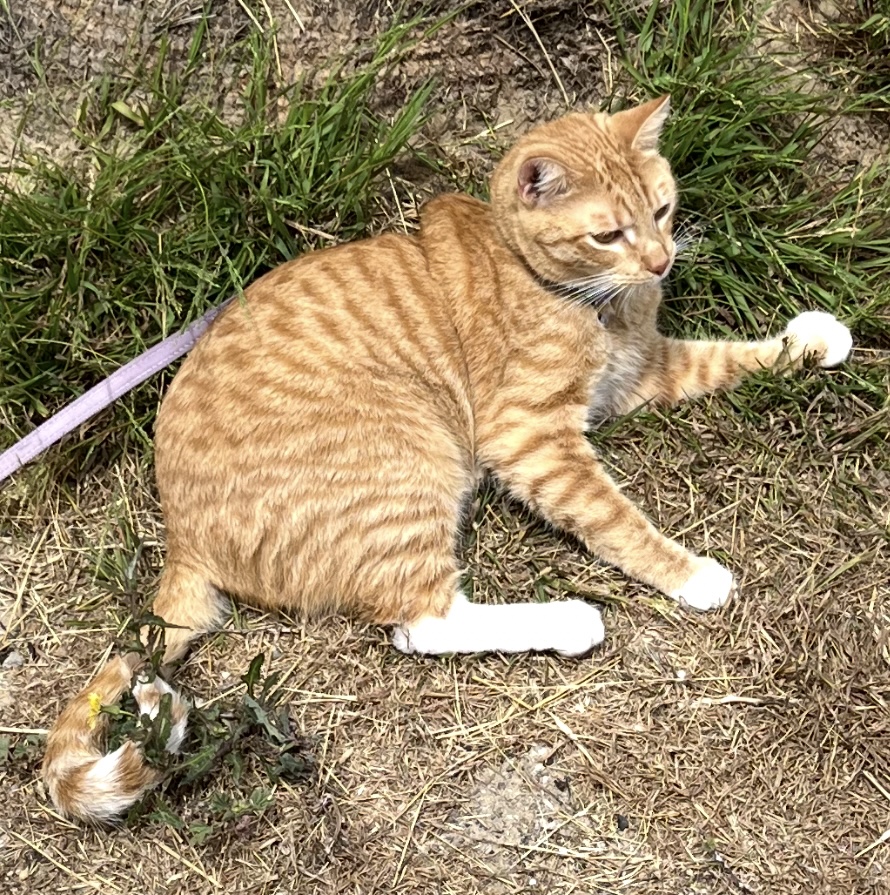 Orange tabby with white socks, white chest, white tipped kale