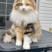 Long-haired female calico very friendly, and Fearless, she will jump in to peoples cars and stores or tailgates are left ajar and go into open garages