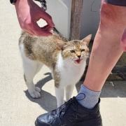 This cat has been hanging around our place near 31/Stop 18 for a week or 2 now. He’s so sweet, appears unaltered and doesn’t seem interested in moving on. He’s too friendly to have not had a home somewhere.