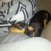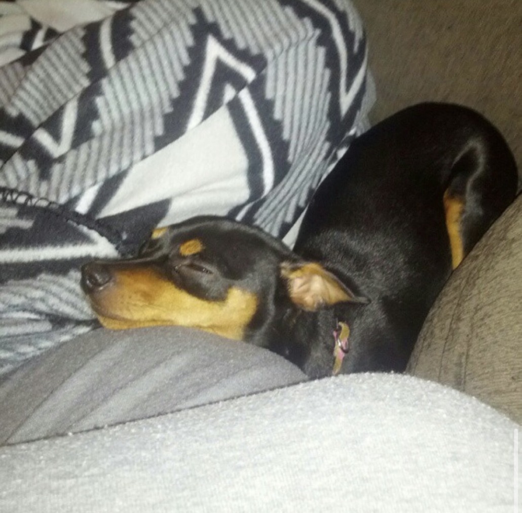 Our female miniature pincher got out and ran scared of the fireworks. She is 13 and is more than likely terrified. Please help us bring her home