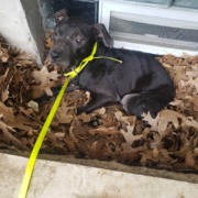 Black male Pitbl mix. Uncropped ears. Back legs are immobile, but he can walk. Very timid.