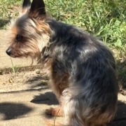 Very small toy yorkie about 7lbs. Teeth not in good shape. He is a very old dog and needs his medicine.