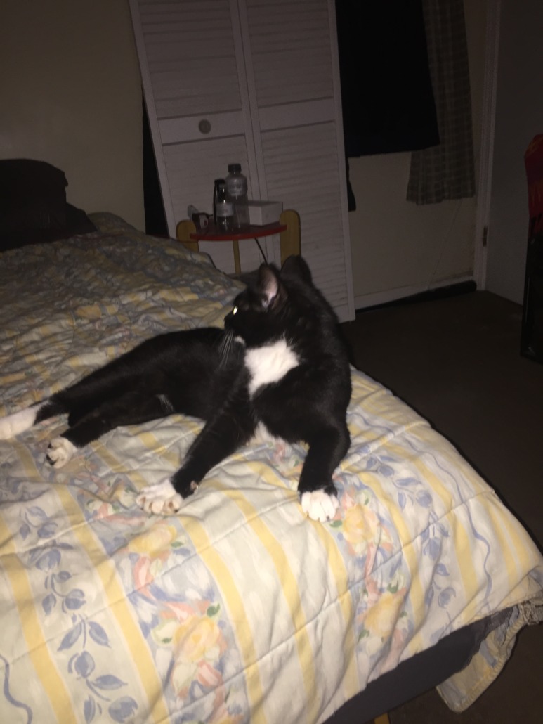 Goes by “boots” this is a fixed female the picture is from about 5-8 yrs ago is larger with a hanging stomache wish I had more pics