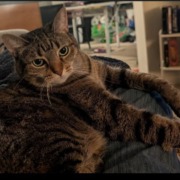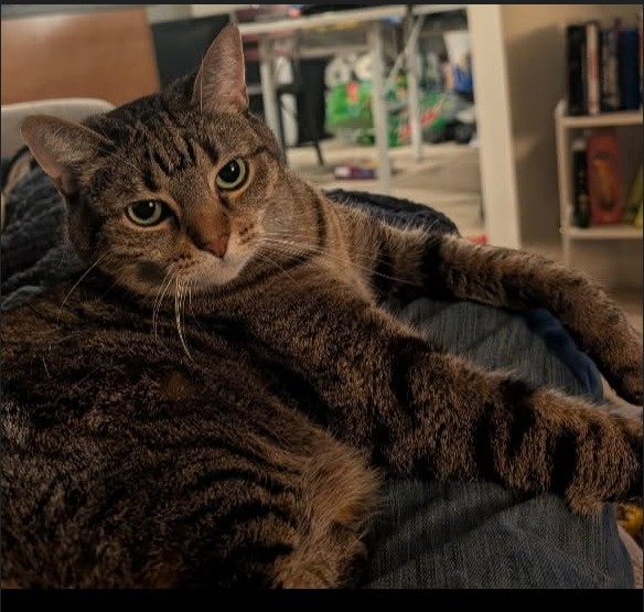 Liz is about 7 years old/spayed/bright green eyes/all black toes/affectionate/curious/Does have a Microchip!