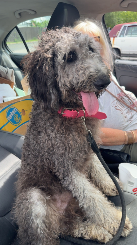 Brown curly looks like a mix of a poodle and wolf dog