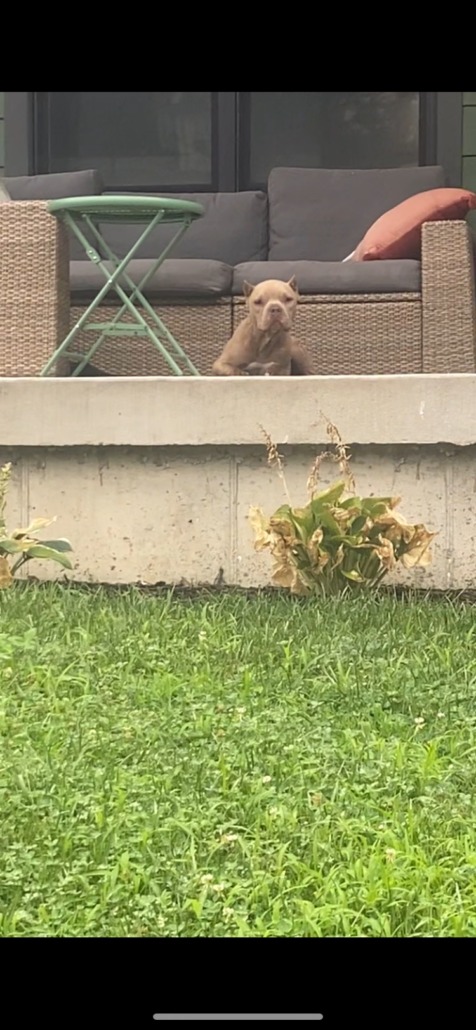 Appears to be a pit mix. Roaming Central Ave this morning.