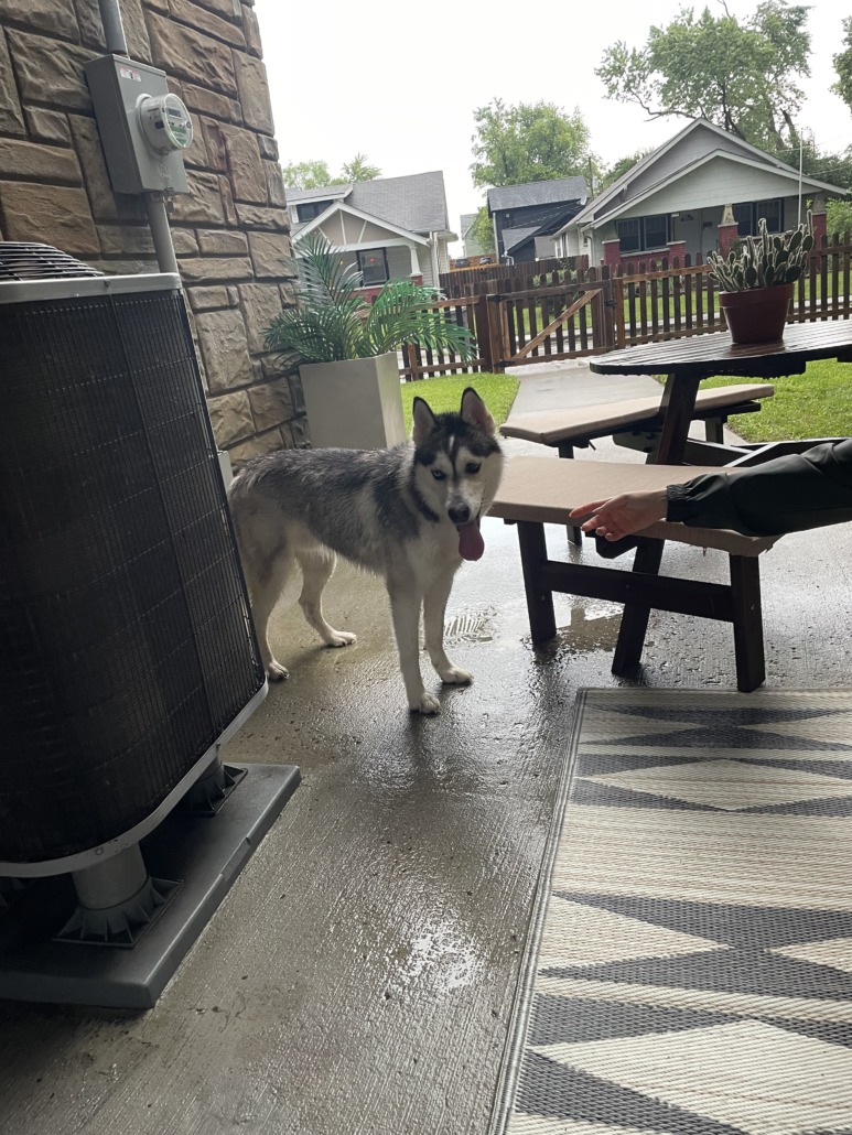 Dog has two different color eyes a blue and brown. He’s very playful and sweet but he’s a runner, I gave him water and food (didn’t want it) and tried to keep him with me but he ran and I couldn’t catch up.