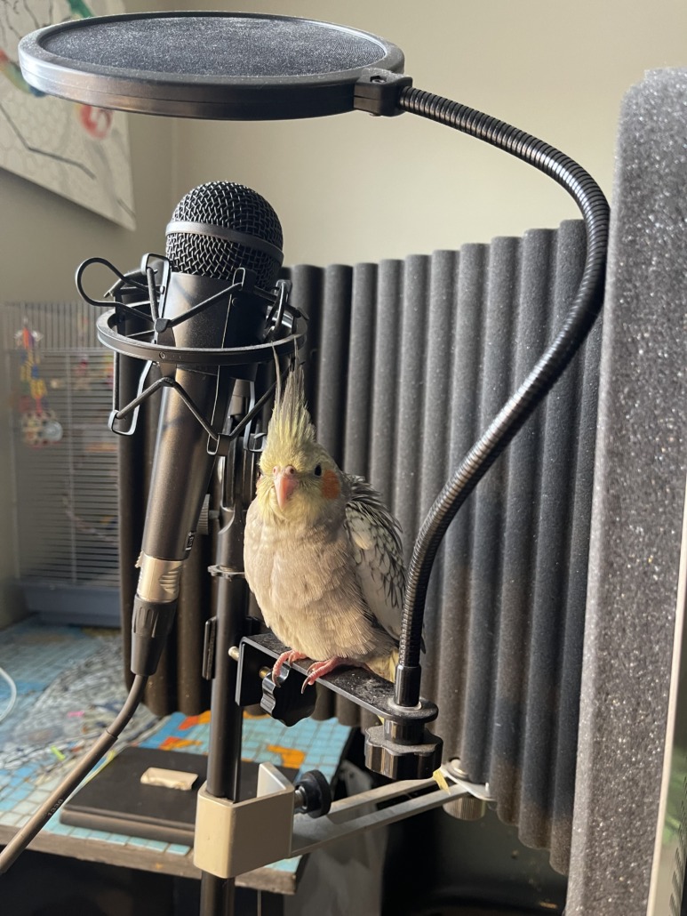 Yellow, grey, red cheeks. He’s a super smart bird, he can sing pink panther, Star Wars, September by earth wind fire, happy and you know it. He’s very vocal and has his flight feathers and nails still.