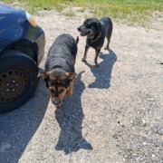 2 black Shepard mixes with collars. Spotted at Pendleton Pike and Shadeland Avenue