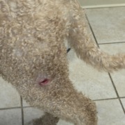 Un- neutered, male doodle. Tan with some white. Has wound on left thigh, that looks like it has been treated somewhere. Very friendly, had red collar no tags, no microchip. Found near Oil Creek Drive, 46268. Pet being held by person who found him. Contact Michigan Road Animal Hospital.