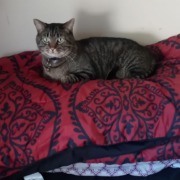 My cat Asher escaped last night if anyone sees him plz let me know he is a scaredy cat and probably won’t come to anyone. He’s a big fat black and grey tabby with a shiny blue color that has a jingle bell on it. He is fixed but not chipped. And he does know his name so he will meow back if called too.