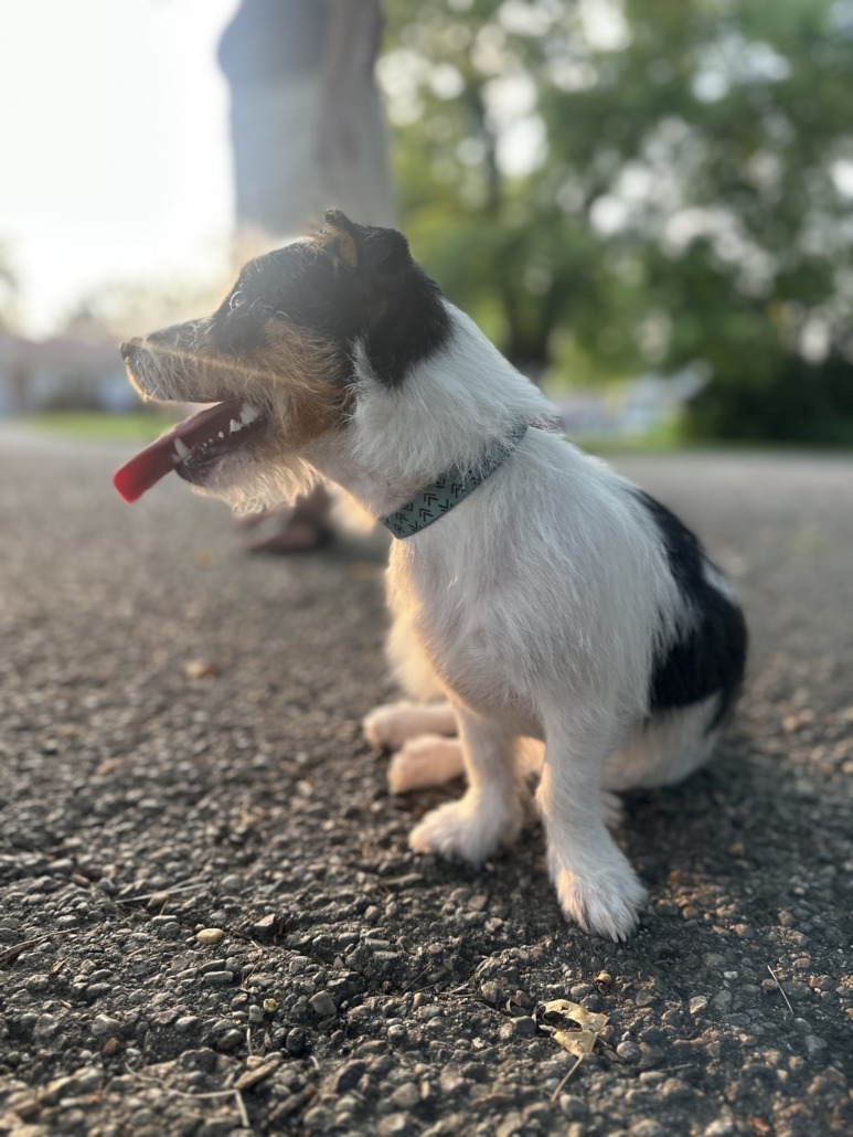 Very friendly. Looks like a Jack Russel mix.