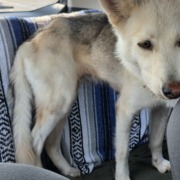 Very sweet husky/shepherd mix girl, VERY emaciated. Looks like she had puppies roughly 2 months ago. Had a light purple collar on with no tag, had her checked for a microchip at vet but no dice. Found in the Fresh Thyme parking lot on 86th.
