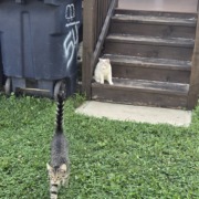 There are TWO cats staying under my deck. One is striped and the other is white. Please show valid proof of ownership.