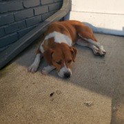 2 dogs 1 seems older, they have been hanging out at brads brass flamingo since yesterday and are still there. Another post says Animal Control came but would not take them.