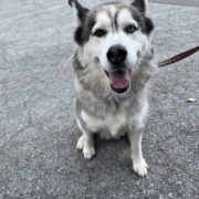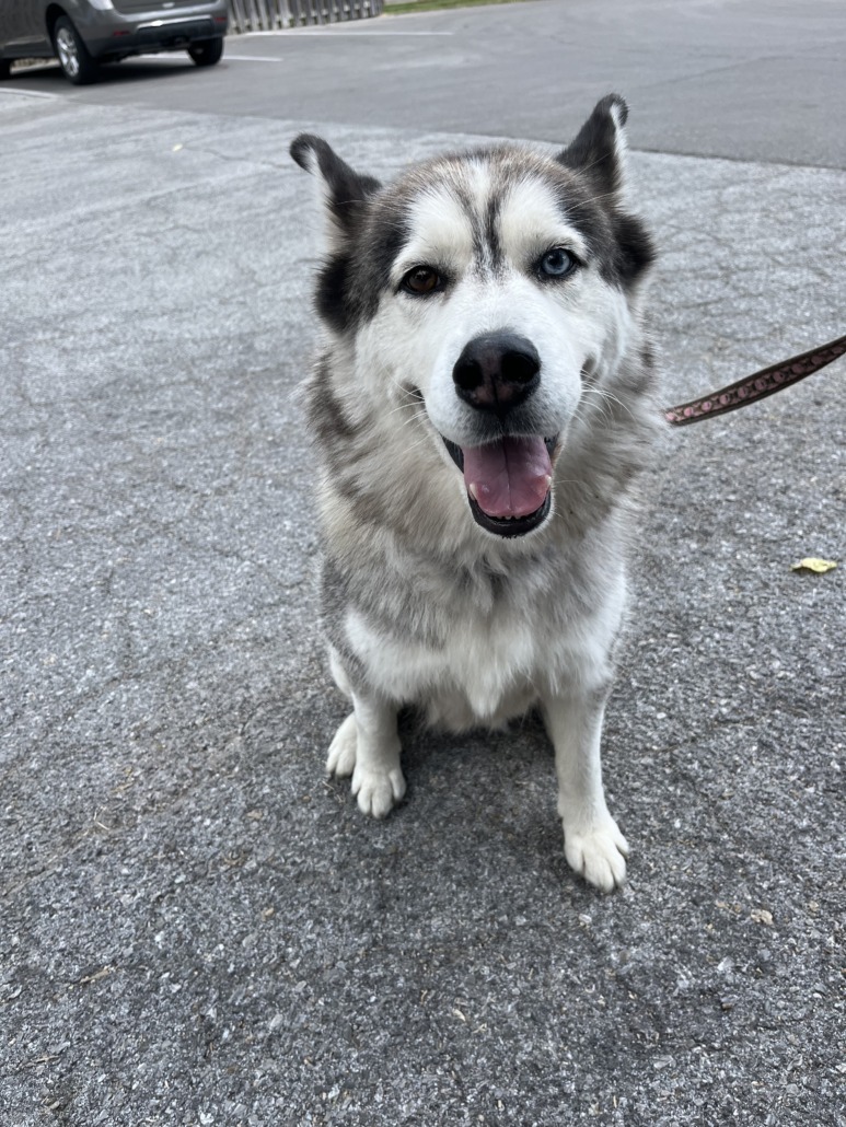 Large husky. One brown eye one blue eye. Pink collar no tags