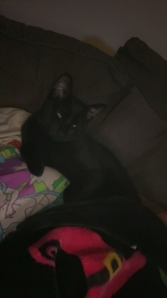 Juno is a male black kitten about 6 months old has some little white hairs on his neck he was home when I got home from work I’m assuming he got out when my kids got home from school and we can’t find him anywhere we are located in Sherman village apartments