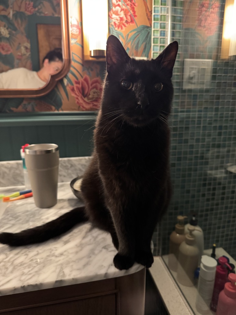 Large black short hair cat – will likely come to you if called over. He’s indoor/outdoor and likes to hang out within a couple blocks of 46th and Illinois. Doesn’t have a collar (always gets it off).