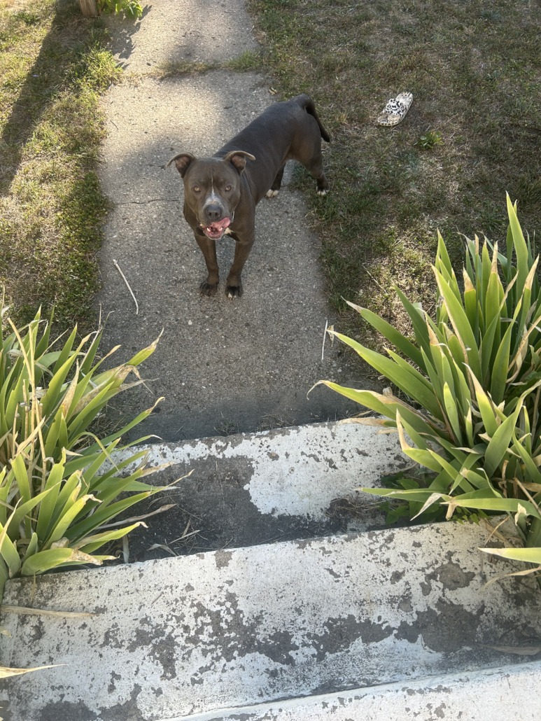 In fact tact male pitbull. I can’t keep him as I have 3 reactive dogs. He belongs to some one .