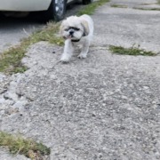 Pale blue collar. Sounded sick and looked like possibly had cloudy eyes. Snappy so couldn’t get close to him to see info on his tag. Did not want to be approached.