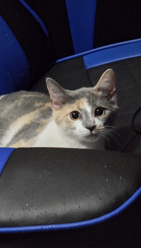 Calico cat, playful, very curious