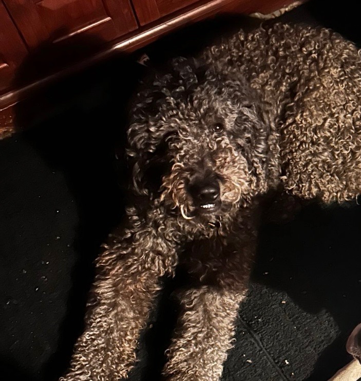 Bentley is a large, neutered, dark gray/smoky black doodle who is weary of strangers. He more than likely will not come to someone he does not recognize- if he is able to be taken to a vet; he is microchipped and a registered service dog. Please contact me if you have him or have had any sightings of his whereabouts!! We need your help to bring him back home ❤️ thank you!