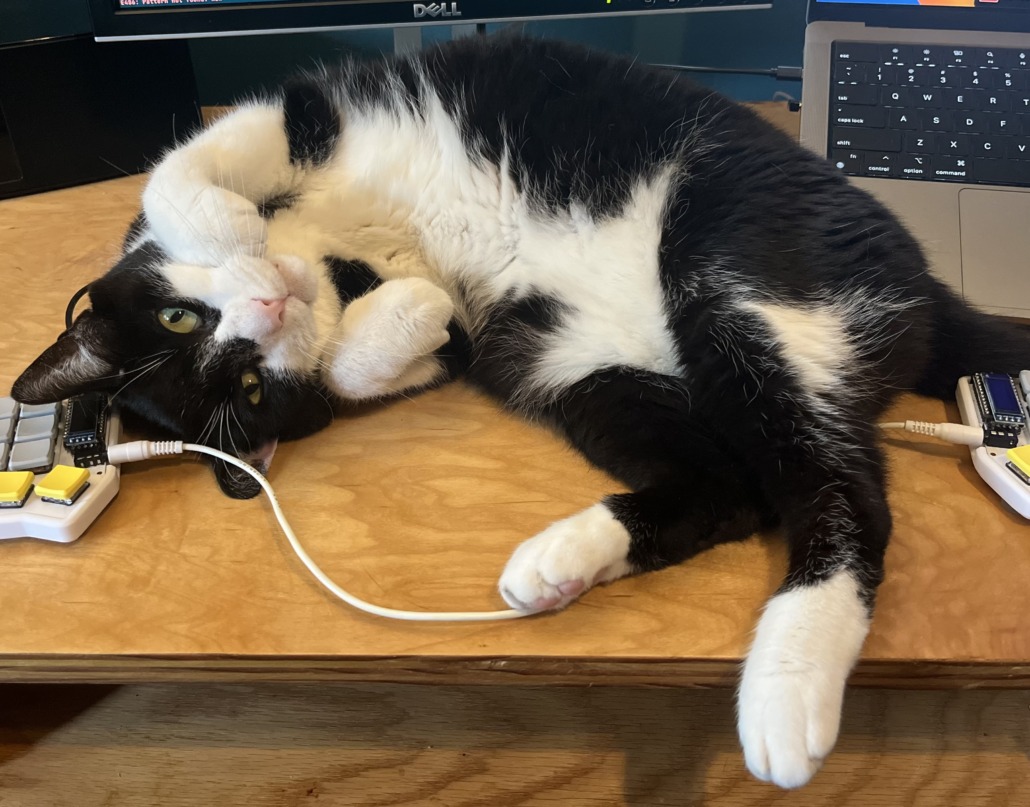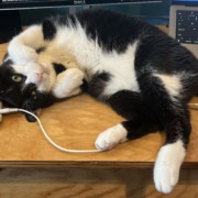 He is a fairly friendly tuxedo cat who is unlikely to run away from humans, although does on occasional. Will always come for treats.